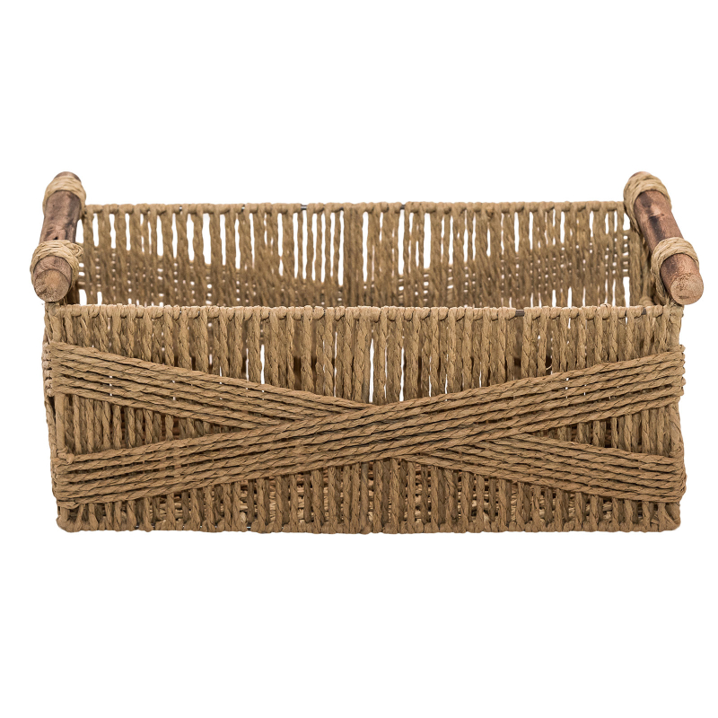 Дървените дръжки не само добавят естествен акцент, но и улесняват пренасянето, когато е нужно. Този панер е идеален за подреждане на козметика, тоалетни принадлежности, аксесоари, играчки, кърпи или дори списания. С него ще създадете по-подредено и красиво пространство, без да правите компромис с естетиката.