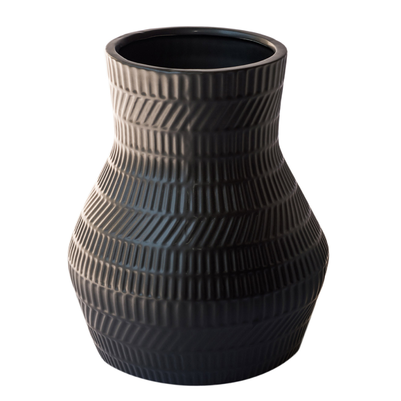 Добавете модерен акцент и изтънчена елегантност в интериора си с тази стилна керамична ваза в класически черен цвят. Съчетавайки минимализъм и характер, тя е изключително подходяща за съвременни пространства, в които се търси баланс между декоративна функция и стилна сдържаност. Черният ѝ цвят подчертава контраста с цветните аранжировки, правейки всяка композиция по-въздействаща и елегантна.