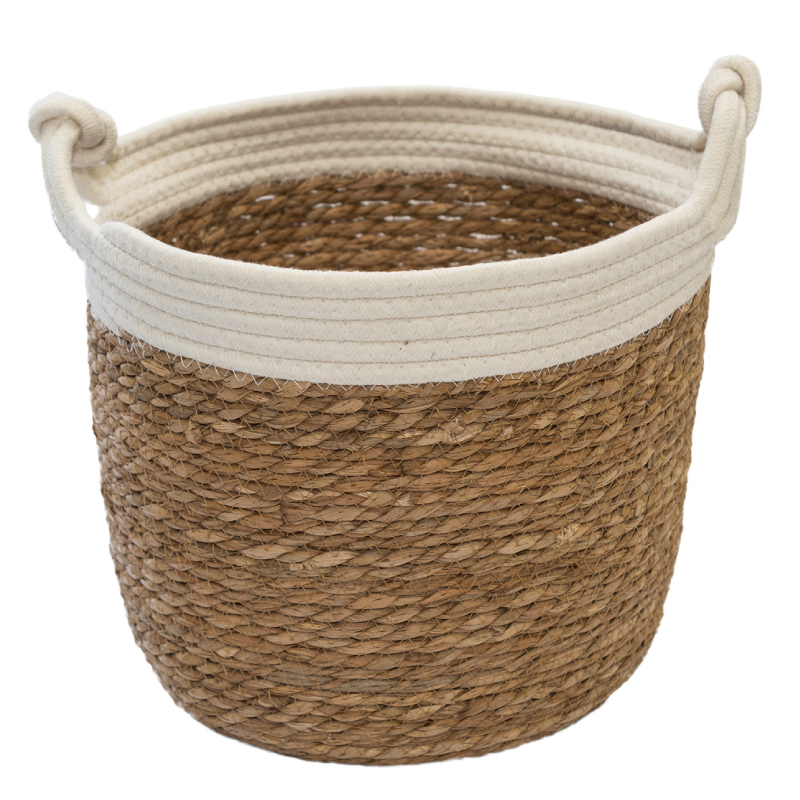 Придайте топлина, стил и ред в интериора си с тази естествено красива плетена кошница с бял акцент, която съчетава ръчна визия, модерна естетика и практичност. Изработена от царевично въже и снабдена с удобни дръжки от текстил, кошницата е не просто декоративен елемент, а функционално решение за съхранение, организация и аранжиране във всяка част на дома. Нейният натурален цвят, допълнен от елегантен бял кант, създава усещане за хармония и свежест, което лесно се вписва в различни интериорни стилове - скандинавски, бохо, рустик, винтидж и други.