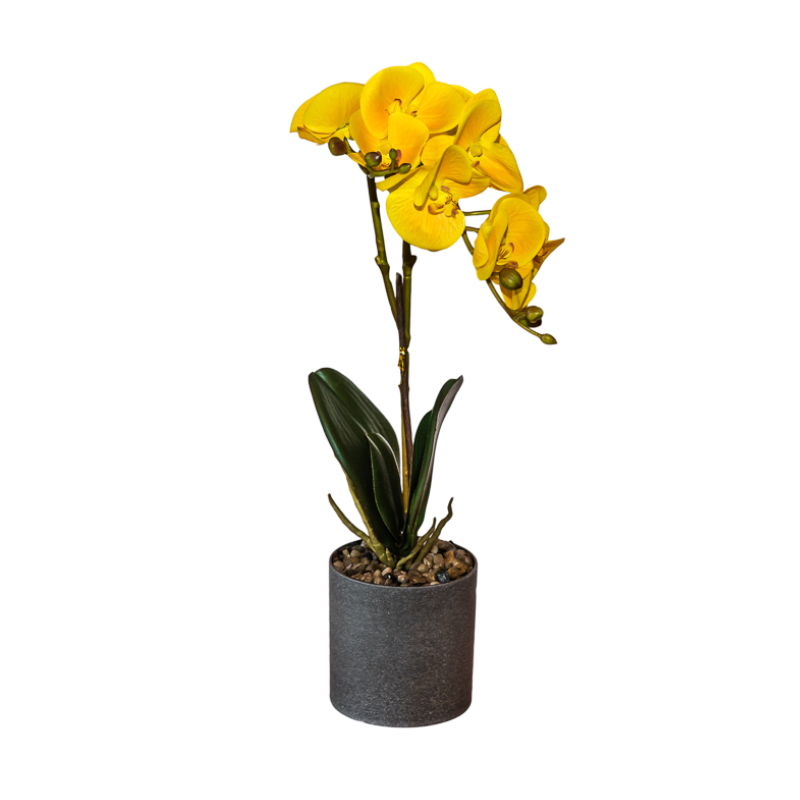 Перфектна за декорация на дома, офиса или хотелски интериор, тази орхидея в слънчев жълт цвят внася топлина и уют, като същевременно придава усещане за хармония, изтънченост и женствена енергия.
