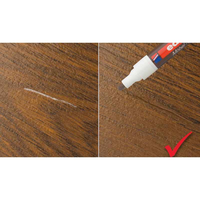 Маркерът за мебели Edding E-8900 е предназначен за трайно ретуширане и запечатване на драскотини и леки повреди по мебели от масивна дървесина и фурнир. Благодарение на мастилото с консистенция, подобна на боя, той осигурява равномерно покритие и естествен визуален резултат, съобразен с цвета на дървото махагон.