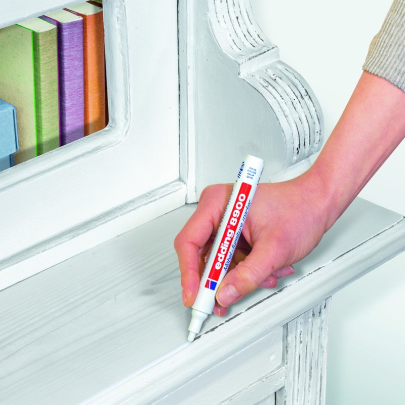 Бързосъхнещото мастило е водоустойчиво, устойчиво на леки домакински почистващи препарати и не се размазва, като гарантира дълготраен резултат. Кръглият връх с ширина 1.5-2 мм позволява прецизно нанасяне върху драскотини, а продуктът е без добавени ксилен и толуен, без мирис и безопасен за домашна употреба. Произведен е в Германия и отговаря на високите стандарти за качество на Edding.