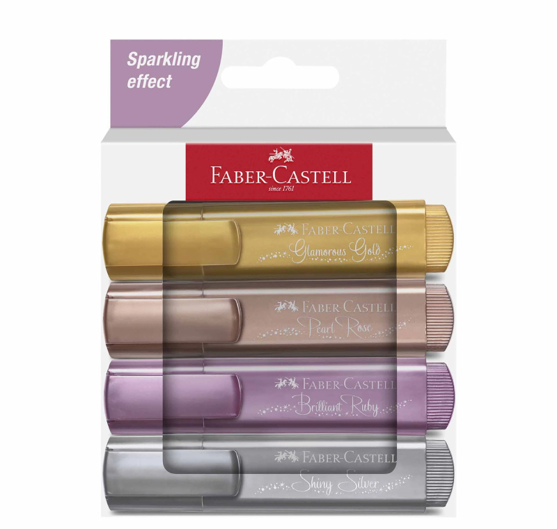 Металиковите текст маркери Faber-Castell 1546 придават елегантен и блестящ акцент на всяка бележка или текст. С нежен брокатен ефект те правят подчертаването по-видимо и атрактивно, като същевременно запазват отлична четимост. Мастилото е на водна основа и е щадящо както към хартията, така и към околната среда.