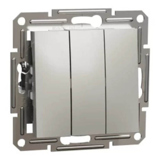 Тройният електрически ключ за осветление Asfora е предназначен за скрит монтаж и осигурява управление на три независими осветителни кръга. Работи с номинален ток 10 A и напрежение 250 V, 50 Hz, което го прави подходящ за стандартни електрически инсталации. Изработен без декоративна рамка, той може да се комбинира с рамки от същата серия. Със степен на защита IP20, ключът е предназначен за използване в сухи вътрешни помещения. Компактните размери 83 x 83 x 43 мм и стилният бронз цвят придават модерен и елегантен вид.