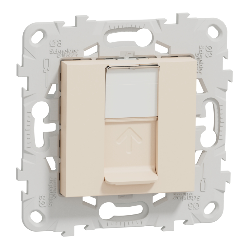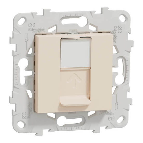Комуникационната розетка RJ45 cat.5e е предназначена за скрит монтаж и осигурява надеждно свързване към мрежови устройства като компютри, рутери и суичове. Поддържа честота до 150 MHz и използва неекраниран кабел тип U/UTP. Съвместима е с рамки от серията New Unica на Schneider Electric. Изработена от UV-стабилизиран термопластичен ABS, с IP20 защита, тя е подходяща за вътрешна употреба. Размерите ѝ са 74.5 x 74.5 x 40.5 мм, а бежовият цвят я прави универсално допълнение към всеки интериор.