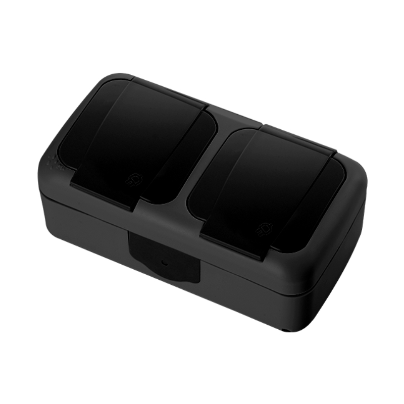 Електрически контакт двоен 16 А влагозащитен IP54 черен, Palmiye VIKO BY PANASONIC.
