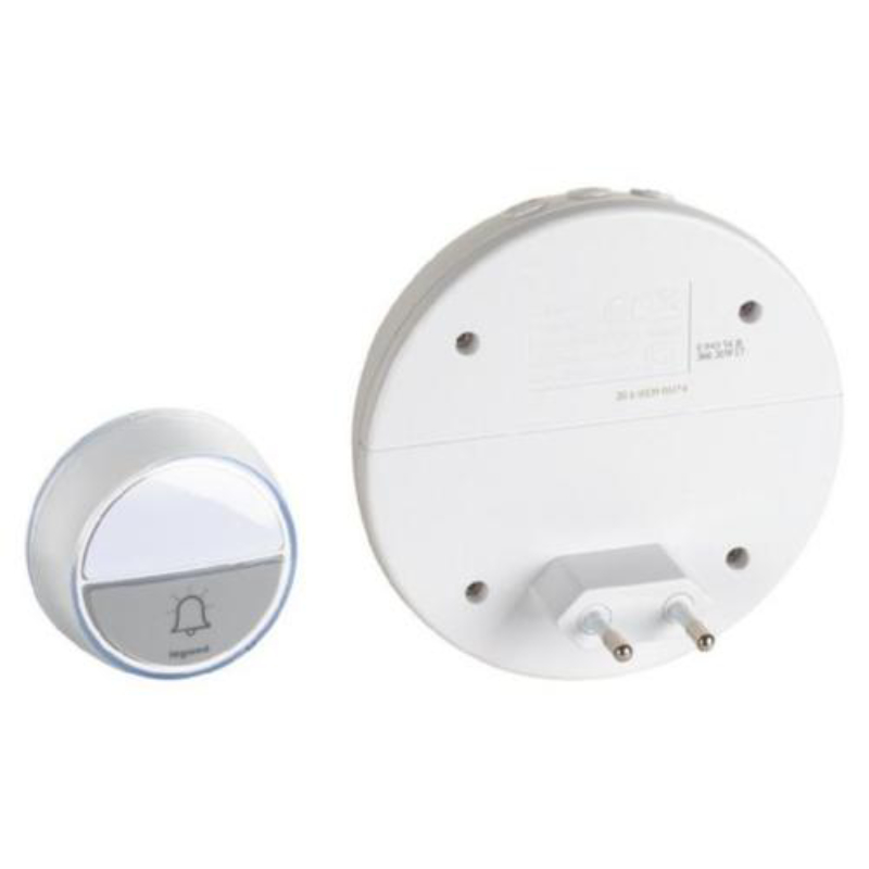 Безжичният звънец предлага удобство и надеждност благодарение на лесния монтаж и широкия обхват на работа. С корпус от бяла пластмаса и степен на защита IP44, устройството е предназначено за вътрешен монтаж чрез повърхностно закрепване.