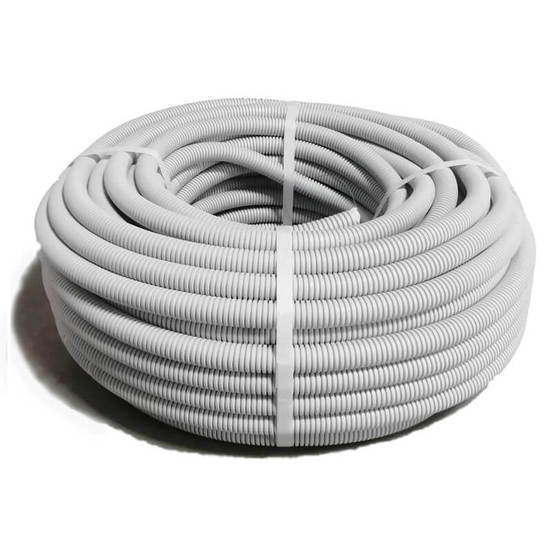 Гъвкава гофрирана тръба за кабели с диаметър ⌀23 мм, подходяща за скрити електрически инсталации под мазилка или в подова замазка. Изработена от устойчив полиетилен, тръбата осигурява базова механична защита (ЕКО клас) и лесен монтаж.