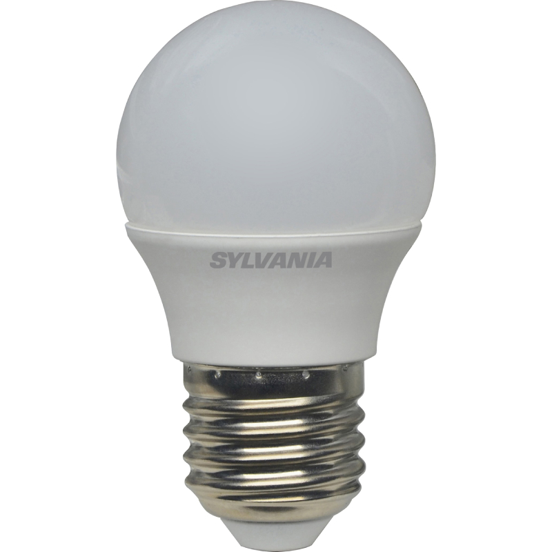 LED лампата SYLVANIA Toledo Ball FR е високоефективен източник на светлина, който съчетава ниска консумация на енергия с дълъг живот и модерен, компактен дизайн. Благодарение на универсалния цокъл E27, крушката е съвместима с широка гама от осветителни тела в дома и офиса.