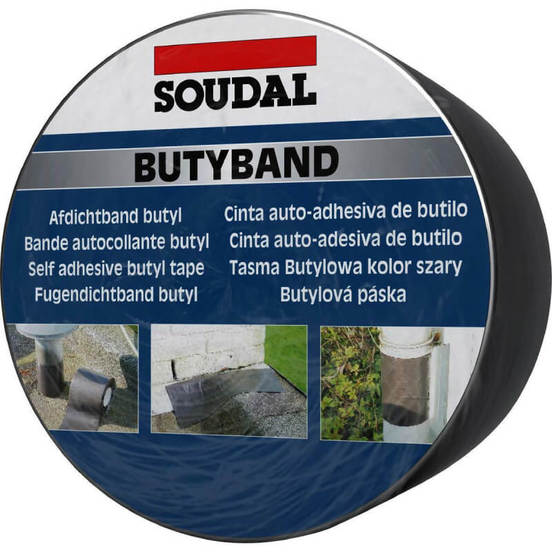 Butyband SOUDAL е висококачествена уплътнителна лента на основата на бутил-каучук, създадена за бързо, лесно и дълготрайно уплътняване. Готова за употреба, самозалепваща и изключително еласто-пластична, тя осигурява отлична адхезия към различни повърхности и запазва своята гъвкавост дори при ниски температури.
