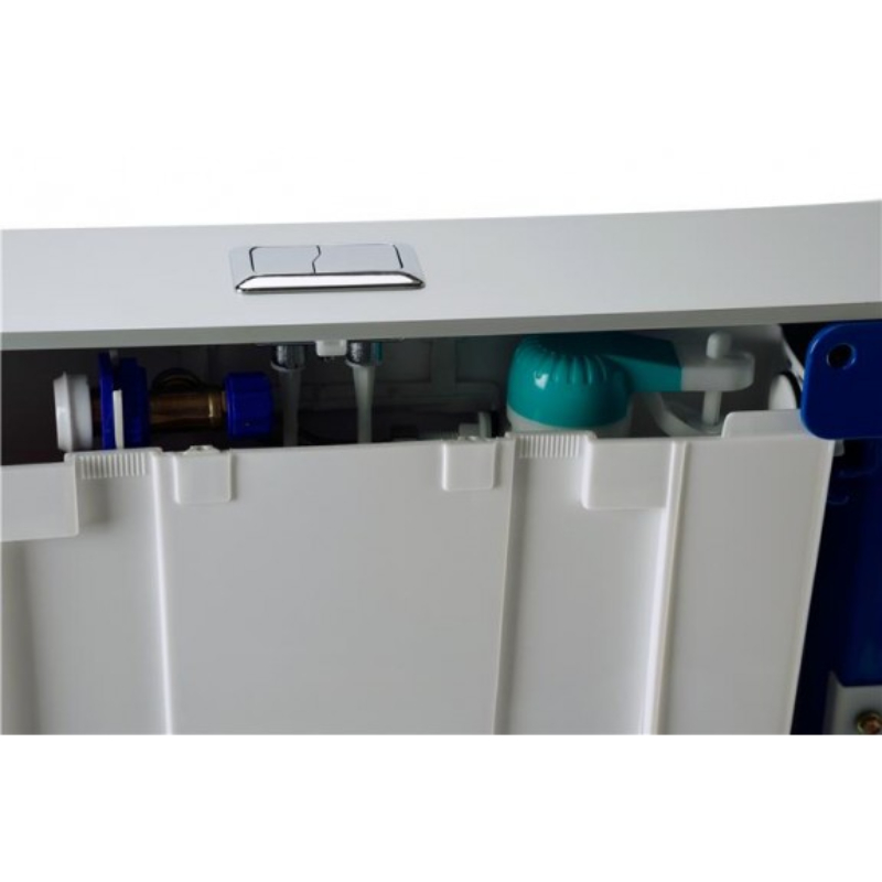 - Дизайн: С двоен бутон за икономично и пълно промиване
