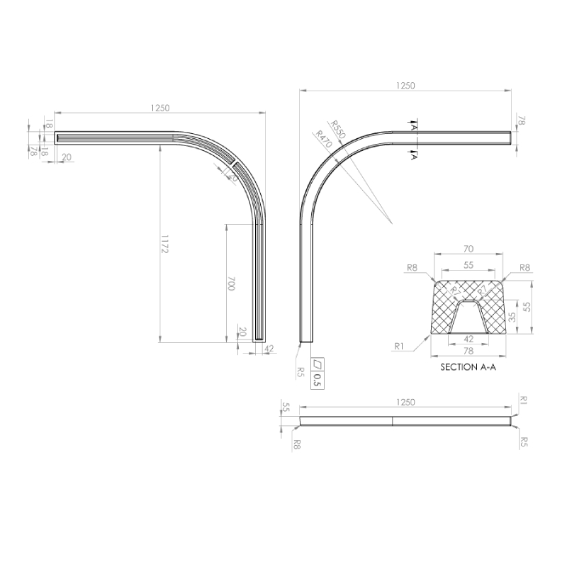 Овалният поддушов праг от серията FAT е проектиран с мисъл за естетика и функционалност. Изработен от иновативния композитен материал граниксит, този праг е изключително устойчив на влага, химикали и високи температури, което го прави идеален избор за натоварена баня. С овалната си форма и дължина до 125 см, той осигурява елегантно завършване на душ зоната, като същевременно предотвратява разливането на вода извън кабината. Цветът Latte внася топъл, неутрален тон, който лесно се вписва в различни стилове интериор.