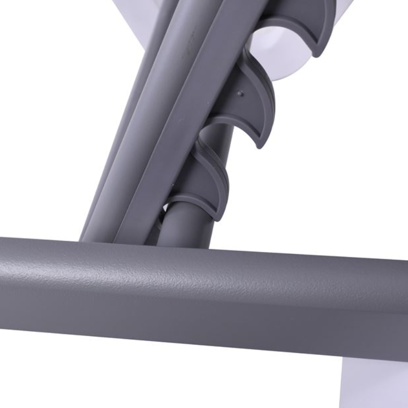 - Цвят: Бяла конструкция с сива текстилна повърхност
