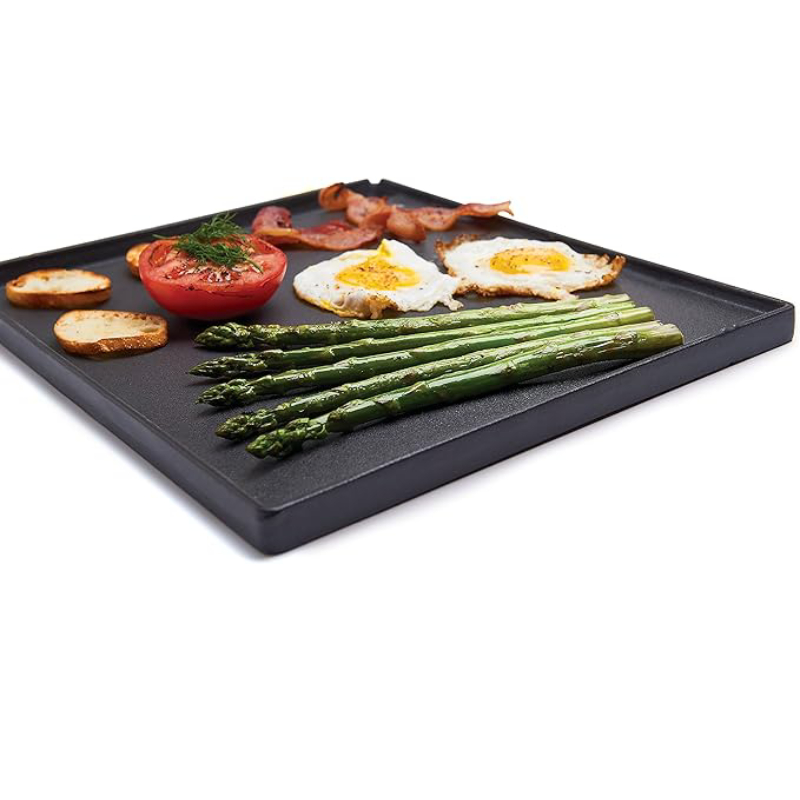 С размери 38 x 33 см, плочата разполага с двустранна повърхност - едната страна е гладка и идеална за печене на крехки храни, докато другата е оребрена, за характерния грил ефект и отличен аромат. Незаменим аксесоар за всяко барбекю - комбинира издръжливост, функционалност и перфектен резултат при всяко готвене на открито.