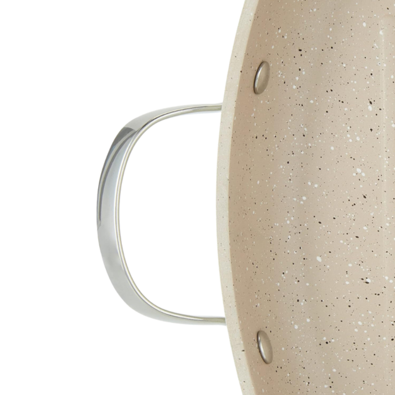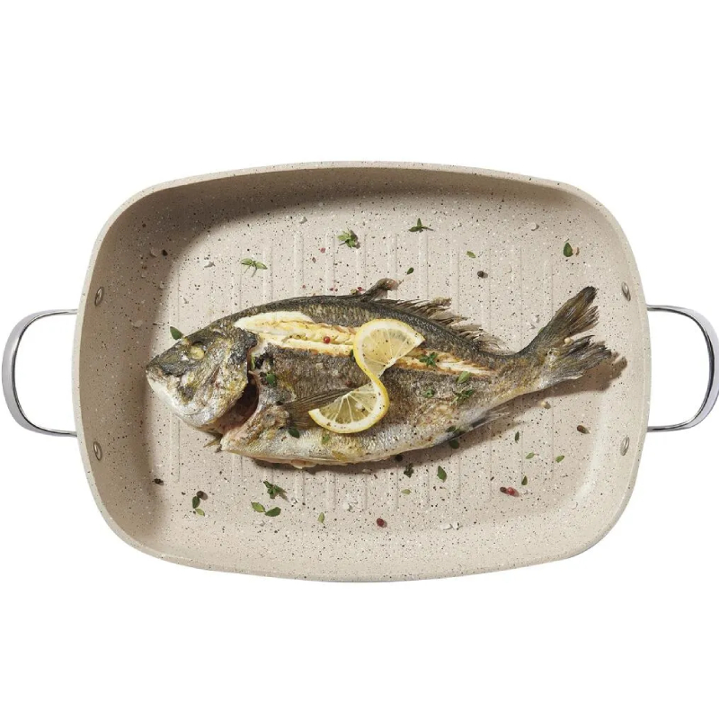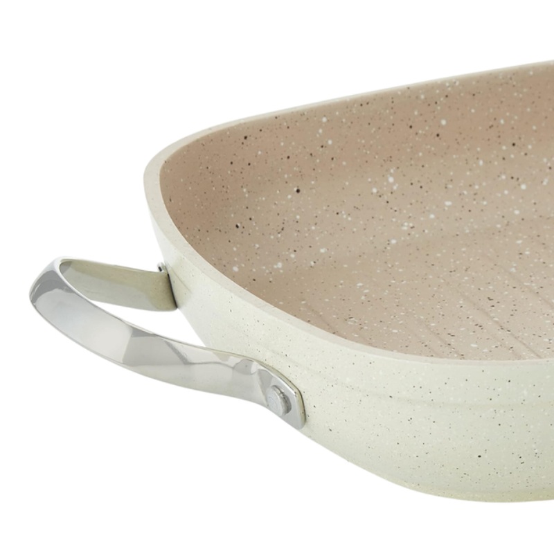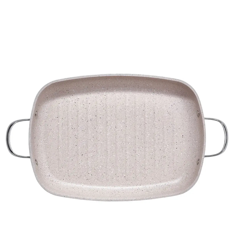 Korkmaz Granita Grill Pan 35 cm впечатлява с висококачествено незалепващо покритие и екологично производство. Отличната топлопроводимост позволява готвене на ниска степен, а специалната гранитна повърхност предотвратява загаряне и улеснява почистването. Подходяща за всички видове котлони и съдомиялна.