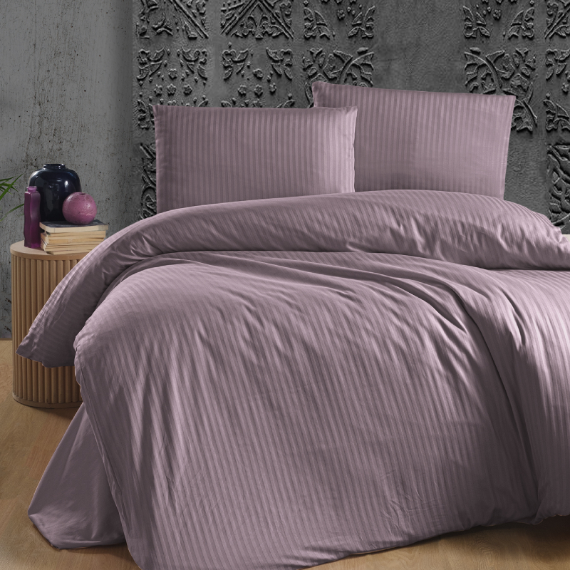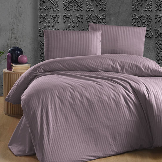 Спален комплект 4 части 100% памук сатен Lilac райе