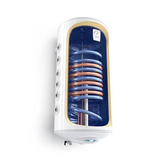 - Две вградени серпентини - за интеграция със соларни колектори, котли на твърдо гориво или термопомпи.
