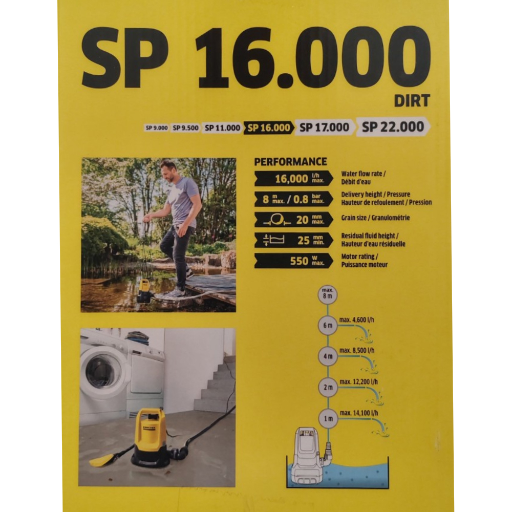 Оборудвана с интелигентен плаващ превключвател, SP 16.000 Dirt може да работи както в автоматичен, така и в ръчен режим - в последния тя изпомпва водата до минимално ниво от 25 mm. Системата Quick Connect позволява лесно и бързо свързване на различни по размер маркучи, което я прави изключително удобна за работа. Леката, компактна конструкция и ергономичната дръжка я правят лесна за пренасяне и съхранение, като същевременно гарантират стабилност и издръжливост при всякакви условия.