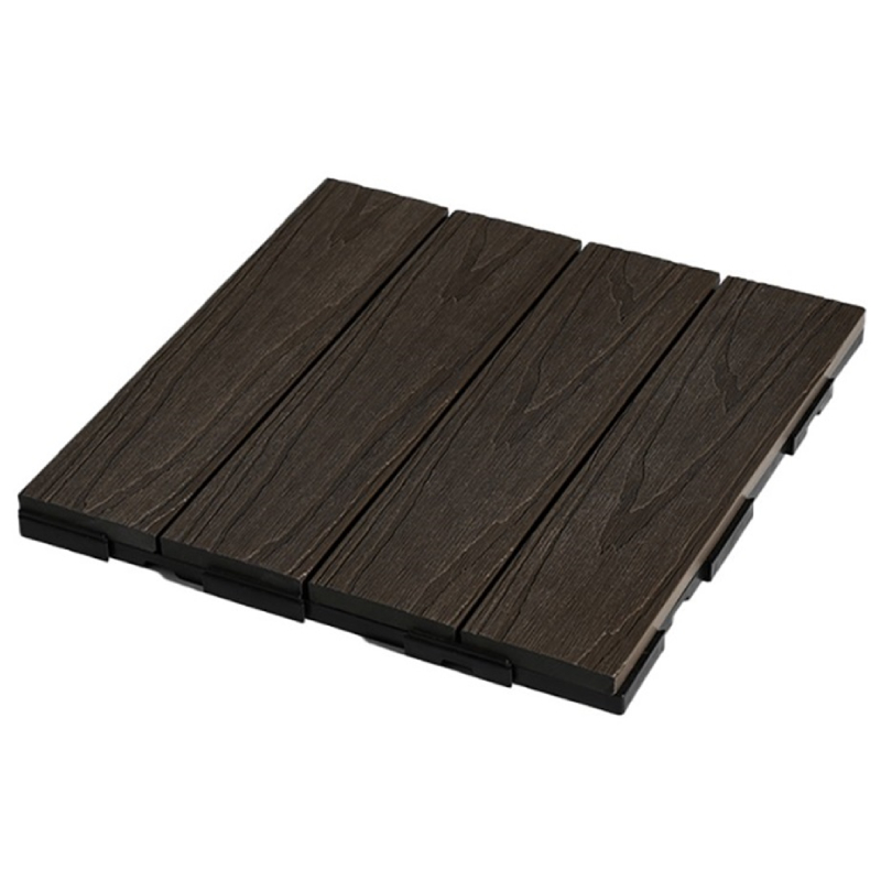 Подов декоративен панел SS05 на марката INTER CERAMIC. Декинг плочката е с размери 300 х 300 х 25 мм. Панелът е изработен от полиетилен + дървесни влакна в цвят кафяв. С противоплъзгаща защита.