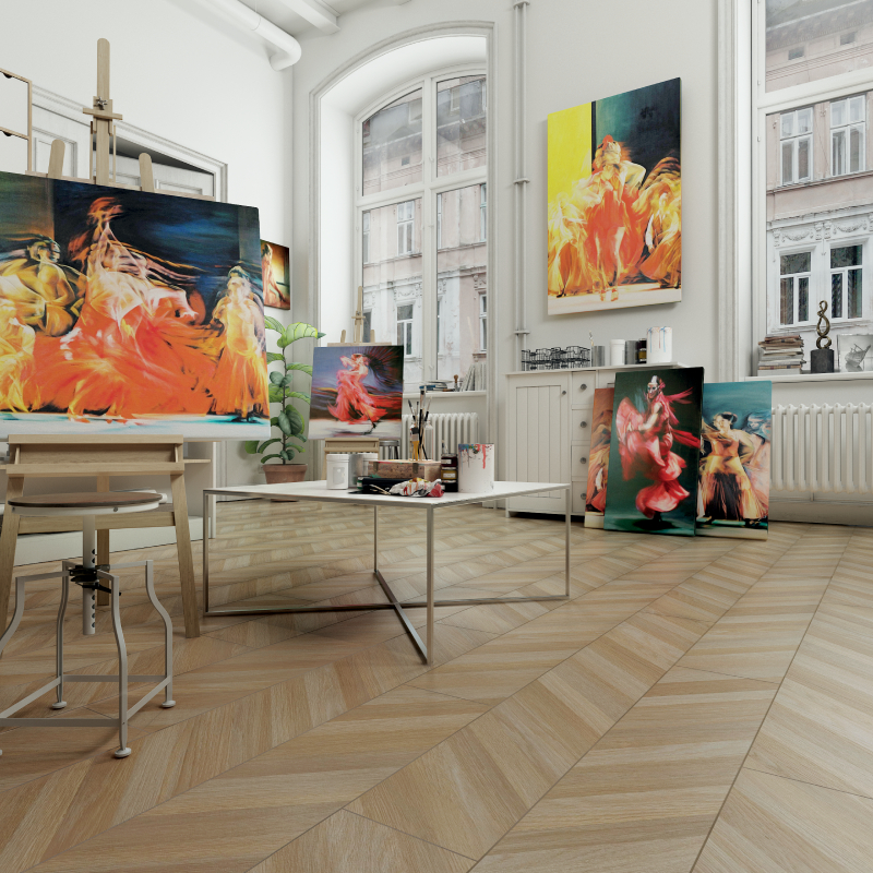 Колекцията Paloma предлага впечатляващо разнообразие от декори, които съчетават модерната визия и топлото излъчване на естествен паркет. Със своята фина матова повърхност и изчистена естетика, Paloma е идеалният избор за интериори с еклектичен или индустриален дух. Големият формат на дъската - 244 х 1380 мм - не само придава визуална просторност, но и улеснява монтажа, като съкращава времето за поставяне.