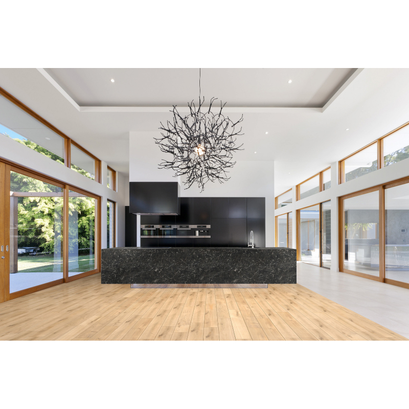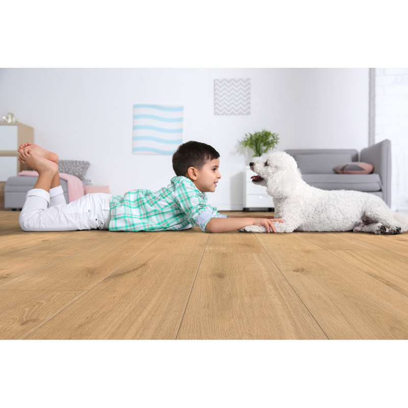 Настилката е напълно водоустойчива, изключително стабилна при температурни промени и съвместима с подово отопление. Подходяща е както за жилищни, така и за търговски помещения с интензивен трафик. Здравото защитно покритие предпазва от надрасквания, петна и UV избледняване, а антибактериалният слой осигурява чиста и безопасна среда.