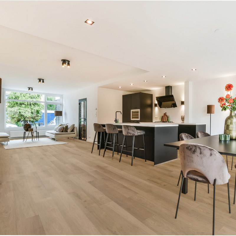 Настилката е напълно водоустойчива, изключително стабилна при температурни промени и съвместима с подово отопление. Подходяща е както за жилищни, така и за търговски помещения с интензивен трафик. Здравото защитно покритие предпазва от надрасквания, петна и UV избледняване, а антибактериалният слой осигурява чиста и безопасна среда.