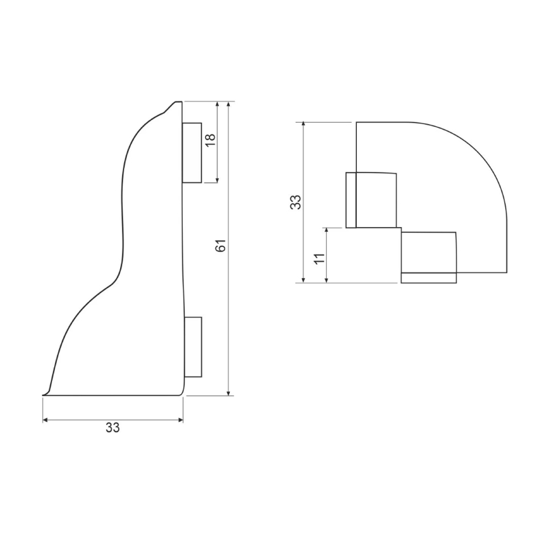 Външните ъгли Дъб Берген са част от серията Perfecta 62 на Korner и са създадени, за да осигурят завършен и елегантен вид на вашите подови первази. Те придават цялост и завършеност на интериора, като осигуряват плавен преход при свързване на первазите под прав ъгъл. Изпълнени в топъл бежово-дъбов нюанс, ъглите перфектно съвпадат с декора Bergen Oak (№ 144) и създават усещане за естествена дървесна текстура.