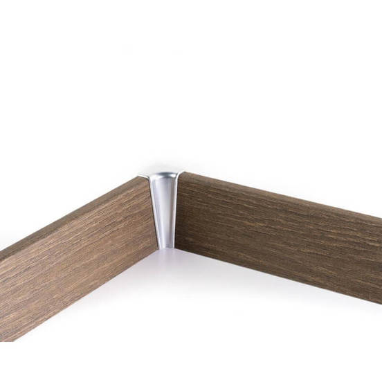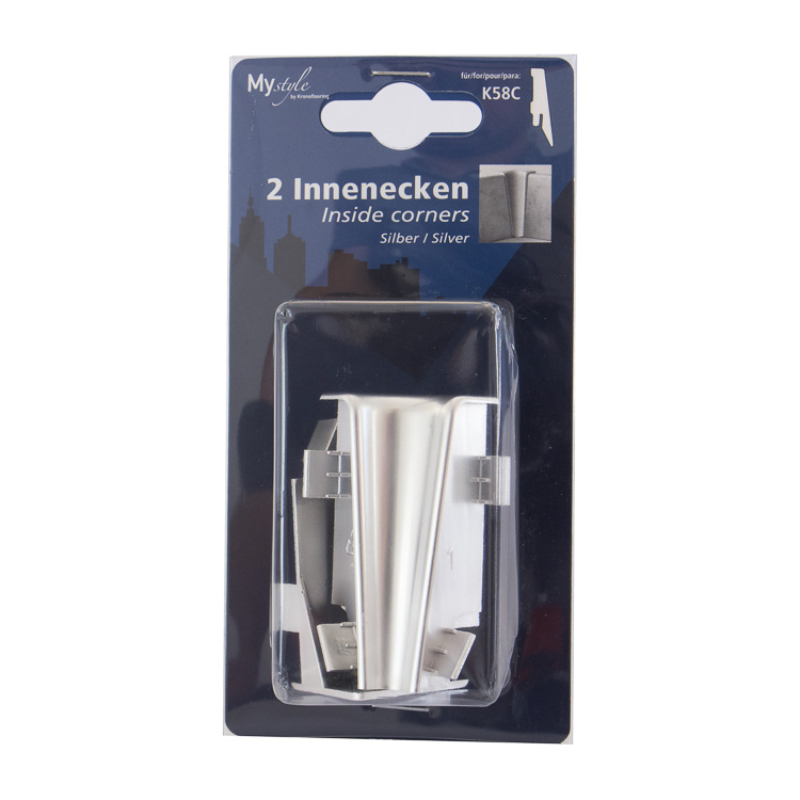 Вътрешните ъгли за подов перваз в цвят сребро са практично и естетично решение за завършване на вътрешни ъгли между стените при монтаж на подови первази от MDF или PVC с височина 58 мм.