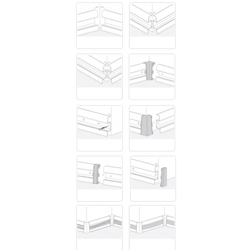 Силиконовите уплътнения осигуряват плътно прилепване към стената и пода, като предпазват от събиране на прах и замърсявания. Первазът е устойчив на удари, водоустойчив и лесен за почистване, което гарантира дълъг живот и безупречен външен вид.