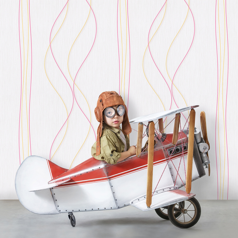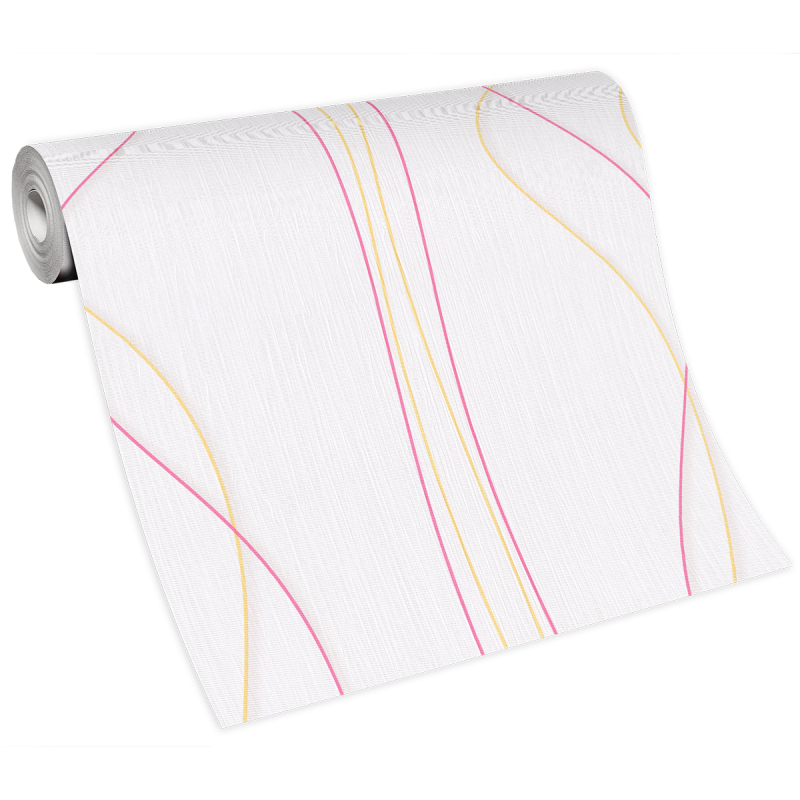 Създайте свежа и жизнерадостна атмосфера в детската стая или спалнята с хартиения тапет "Цветни вълни". Дизайнът с вълнообразни линии в бяло, розово и жълто добавя динамика и настроение към интериора. Подходящ е за акцентна стена или за цялостно облицоване, като носи лекота и игривост.