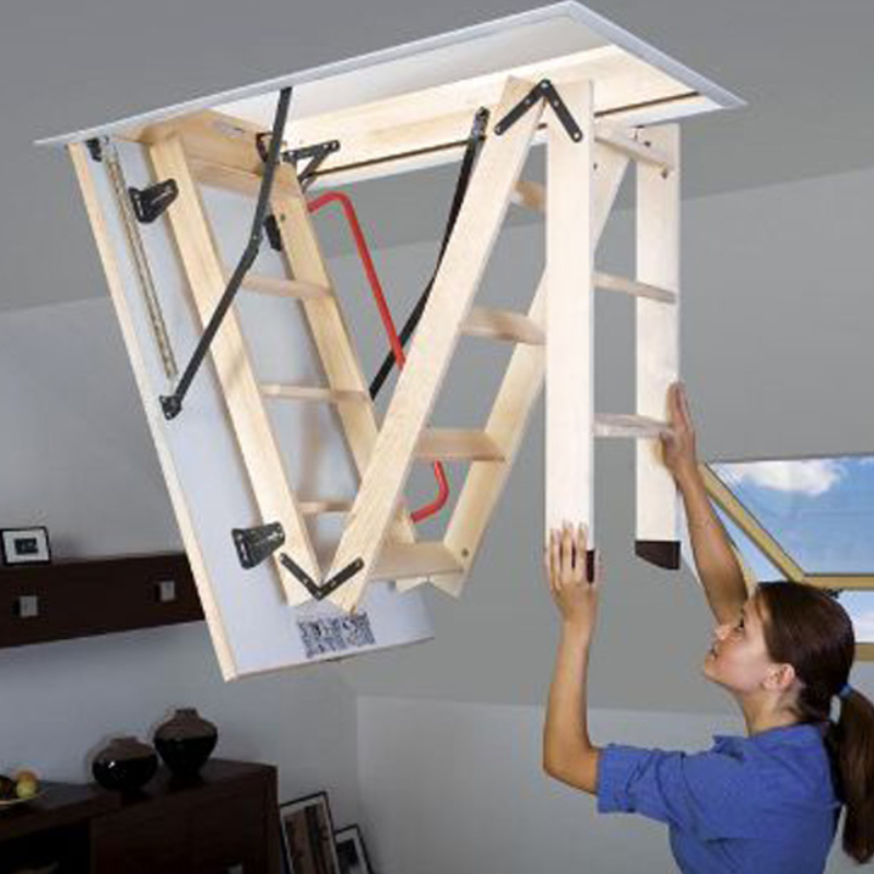 Таванската сгъваема стълба се предлага в напълно сглобен и готов вид за монтаж в отвора на тавана.