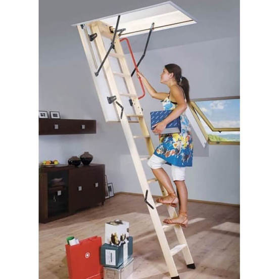 Сгъваема таванска стълба 60 х 120/280 см OLE Optistep. OptiStep OLE е 3-секционна сгъваема таванска стълба. При сгъване се прибира в тавана и освобождава пространство в помещението. Снабдена е с червена метална ръкохватка, която е монтирана върху монтажните планки от дясната страна на стъпалата, което допринася за по-лесното и сигурно изкачване по стъпалата.