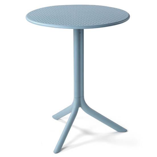 Градински кръгла маса Step Celeste на марката NARDI. Диаметър: ф60.5 см. С централна колона и 3 крака. Материал: равномерно оцветени фибростъклени полипропиленови смоли с UV добавки. Разглобяема. Опция за двойна височина: 40 см/76.5 см.
