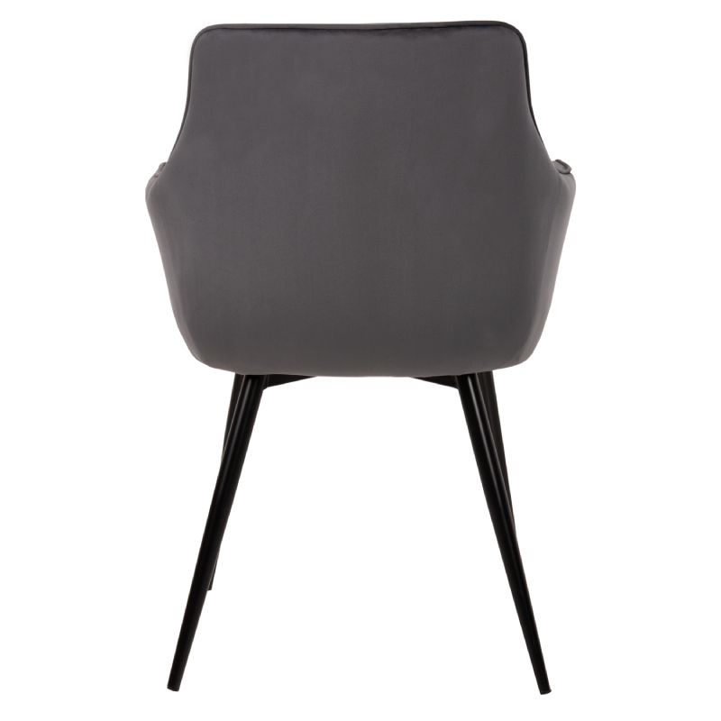 Семплата, но запомняща се форма и неутралната сива тапицерия с фини декоративни шевове го правят лесно съвместимо с модерни, скандинавски или индустриални интериори - идеален избор за трапезария, дневна или уютен кът за четене.