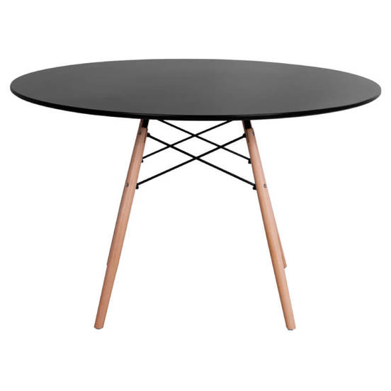 Добавете модерен акцент във вашия дом или заведение с трапезната маса FB98454.02 - стилно решение, което съчетава минимализъм, функционалност и устойчиви материали. Кръглата ѝ форма с черна MDF повърхност и естествени дървени крака внася топлина и елегантност във всяко помещение, като същевременно осигурява стабилност и комфорт при използване. Металните свръзки между краката подчертават индустриалното ѝ излъчване и подсилват конструкцията. Със своя изчистен дизайн и универсални цветове, тази маса е отличен избор за кухня, трапезария, заведение или професионално пространство, където стилът и практичността вървят ръка за ръка.