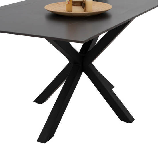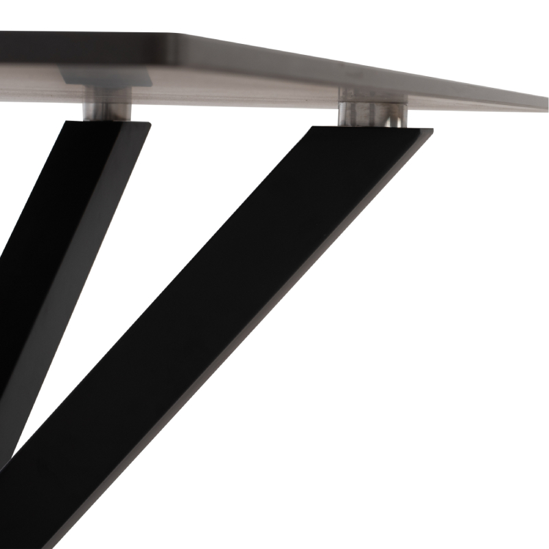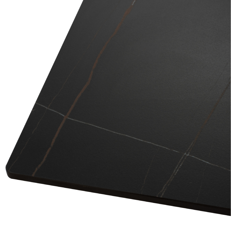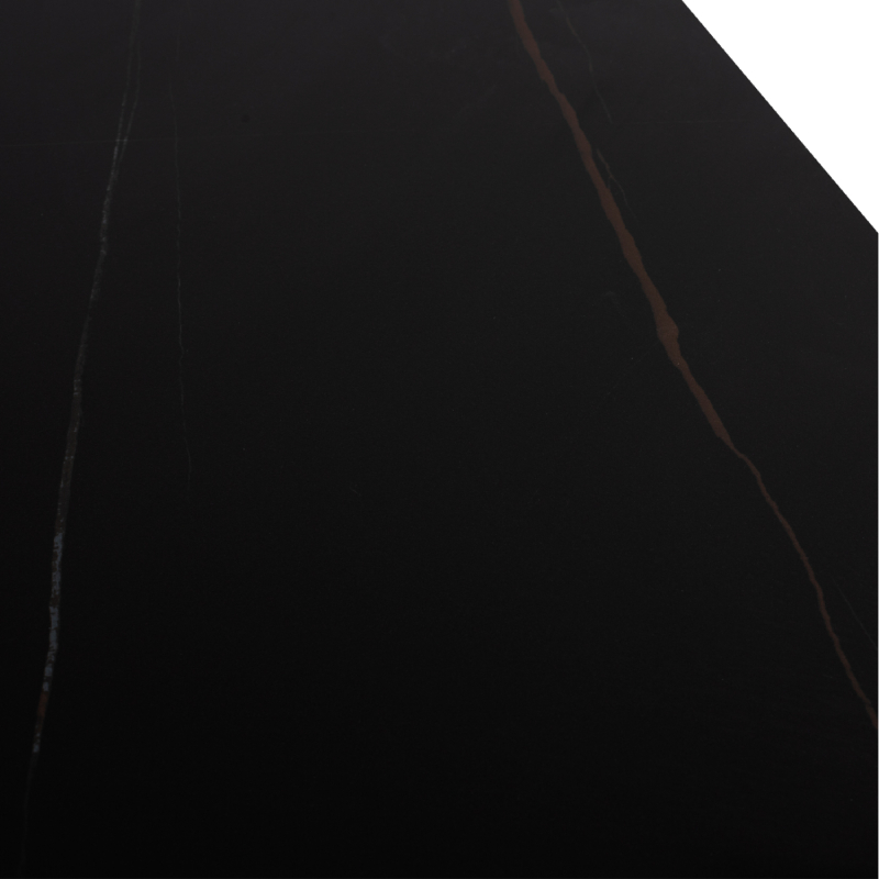 Съчетанието на черен синтерован камък, който имитира луксозен мрамор, и стилни метални крака създава впечатление за футуристичен, но същевременно практичен дизайн, който се вписва перфектно в разнообразни интериори. С впечатляващите си технически характеристики и лесна поддръжка, тази маса е чудесен избор за всеки, който търси мебели, които не само изглеждат добре, но и издържат на времето.