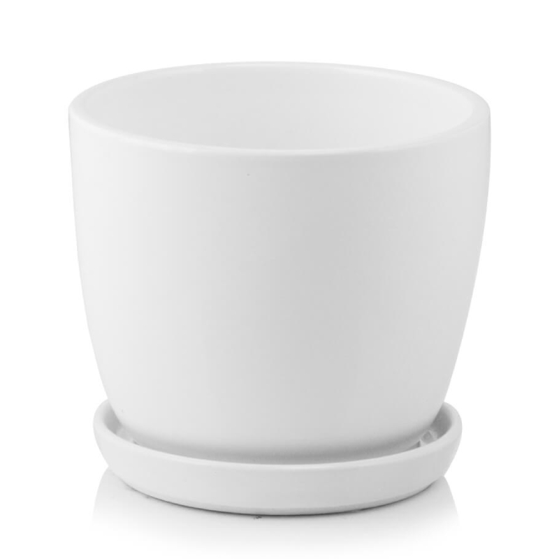 Керамична саксия с подложка от серията Amsterdam на полската марка POLNIX. Чинията е с диаметър 15 см и е в цвят бял. Ръчна изработка. С дренажен отвор за оттичане на водата.