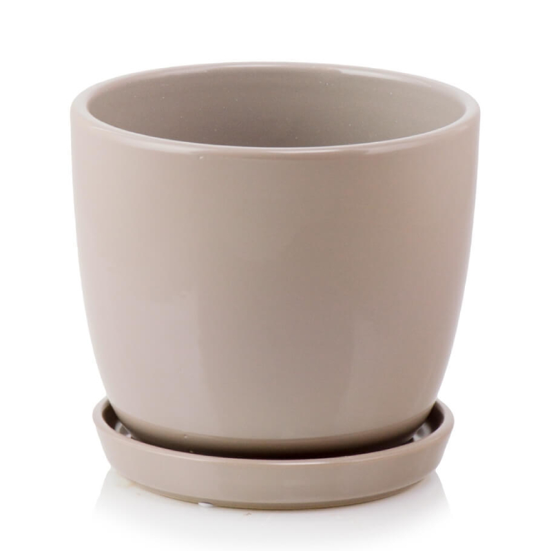 Керамична саксия с подложка от серията Amsterdam на полската марка POLNIX. Чинията е с диаметър 20 см и е в цвят сив. Ръчна изработка. С дренажен отвор за оттичане на водата.