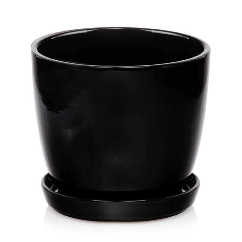 Керамична саксия с подложка от серията Amsterdam на полската марка POLNIX. Чинията е с диаметър 30 см и е в цвят черен. Ръчна изработка. С дренажен отвор за оттичане на водата.