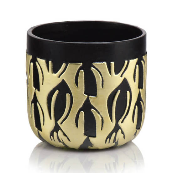 Керамична кашпа от серията Vintage на марката POLNIX. Кашпата е с размери 13 х 13 см и е в цвят черен/златен. Ръчна изработка.