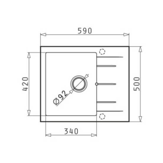 За монтажът на мивката е нужно да се изреже отвор в кухненският плот с размер 57 х 48 см.