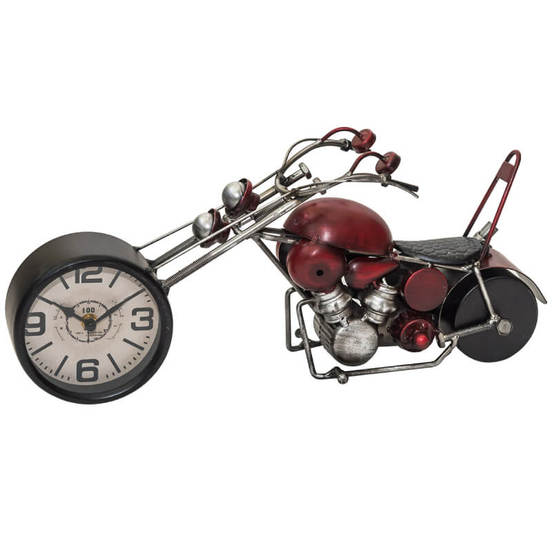 Яркочервеният цвят придава динамика и свежест, докато ретро формата на мотоциклета го прави перфектен подарък за любители на мотори, фенове на ретро дизайна или хора, които ценят нестандартния декор. Поставен на рафт, бюро, камина или етажерка, този часовник ще привлича вниманието и ще създава уникално усещане за стил във всеки дом, офис, кафе или студио.