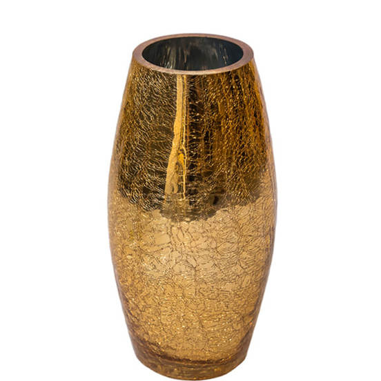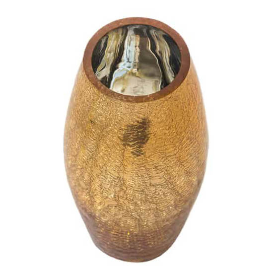 Благодарение на компактните ѝ размери, тя се вписва чудесно върху маси, рафтове, скринове и конзоли. Независимо дали търсите декоративен елемент с блясък или изискан подарък, тази златна ваза е избор, който впечатлява.