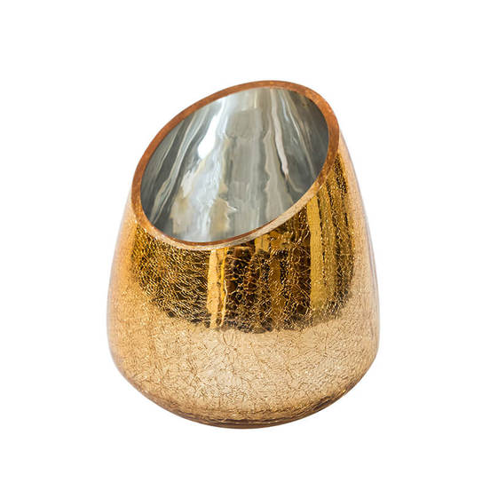 Внесете блясък и артистичен акцент в интериора си с тази елегантна златна асиметрична ваза, изработена от фино стъкло. Съчетавайки съвременен дизайн и класическа естетика, тя впечатлява със своята нестандартна форма и луксозен златист цвят, който красиво отразява светлината и създава усещане за уют и стил. Независимо дали ще я използвате за аранжиране на естествени или изкуствени цветя, или просто като скулптурен декоративен елемент, тази ваза ще добави изискан детайл към всяка стая - хол, спалня, трапезария, офис или рецепция.