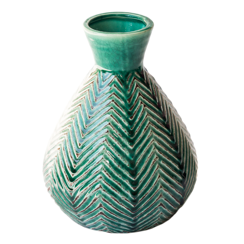 Превърнете всяко помещение в по-уютно, хармонично и стилно пространство с тази изящна релефна керамична ваза в елегантен зелен цвят. Тя съчетава артистичност и функционалност в един завършен декоративен акцент, който придава на интериора ви усещане за спокойствие и изисканост. Изработена от висококачествена керамика, вазата се отличава с внимателно оформена повърхност с фин релеф, който улавя светлината и добавя дълбочина към нейната форма.