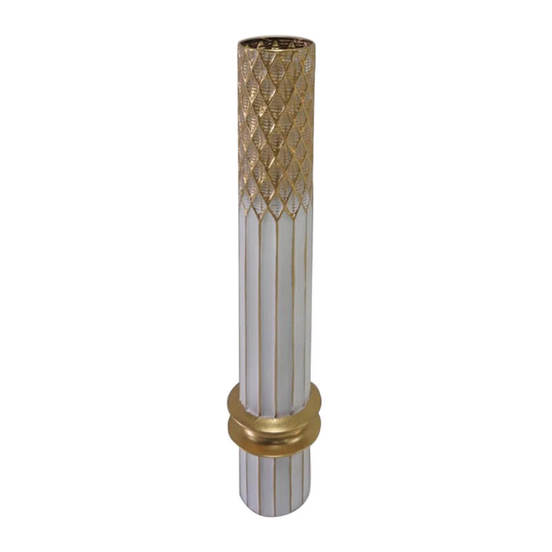 Придайте елегантен акцент на интериора си с изящната декоративна ваза Bruna, съчетаваща стил и модерен дизайн. Изработена изцяло от качествен метал, тя впечатлява със своя висок силует (76.5 см) и фина комбинация от златист и бял нюанс - идеална за съвременни, луксозни и минималистични пространства.