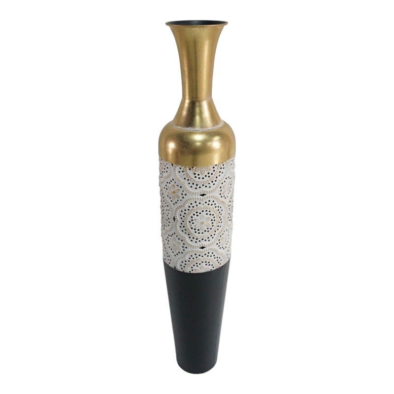 Добавете луксозен акцент към интериора си с декоративната ваза Perikl - елегантен и стилен елемент, изработен от метал с изискан златист нюанс. Със своята впечатляваща височина от 96.5 см, тази ваза е създадена, за да привлича погледа и да придаде завършеност на всяко пространство.