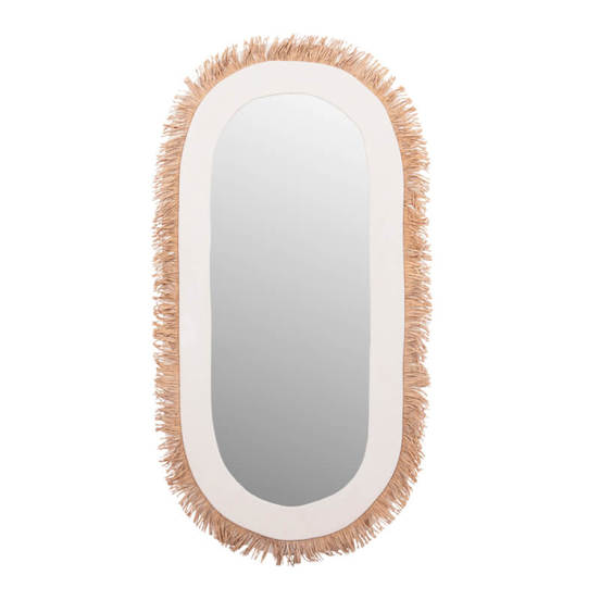 Добавете нотка на средиземноморско очарование и естествена елегантност към своя дом с ръчно изработеното огледало за стена Santorini. Със своята овална форма, бяла рамка и акцент от бежова акрилна трева, това огледало е създадено, за да внесе светлина, стил и простор във всяка стая. Перфектно за интериори в островен, бохо или натурален стил. Santorini впечатлява с уникалната си ръчна изработка и стилна рамка от MDF с циментова текстура, допълнена от декоративна акрилна трева. Благодарение на модерната си визия и вниманието към детайла, огледалото се превръща не само във функционален елемент, но и в централна декорация, която придава топлина и характер на пространството.