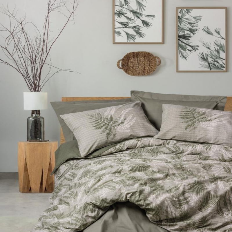 Комплектът Frond се поддържа изключително лесно - просто го изперете на 30°C в обърнато положение, за да съхраните цветовете и формата. Не се препоръчва използването на избелващи препарати. Памукът е естествен материал, който не задържа алергени и е подходящ за чувствителна кожа. Дизайнът на комплекта Frond съчетава изчистена естетика и практичност, което го прави подходящ за всякакъв тип интериор - от минималистични спални до класически обзаведени помещения. Цветовете и десените са внимателно подбрани, така че да създават усещане за спокойствие и уют, без да доминират визуално в стаята.