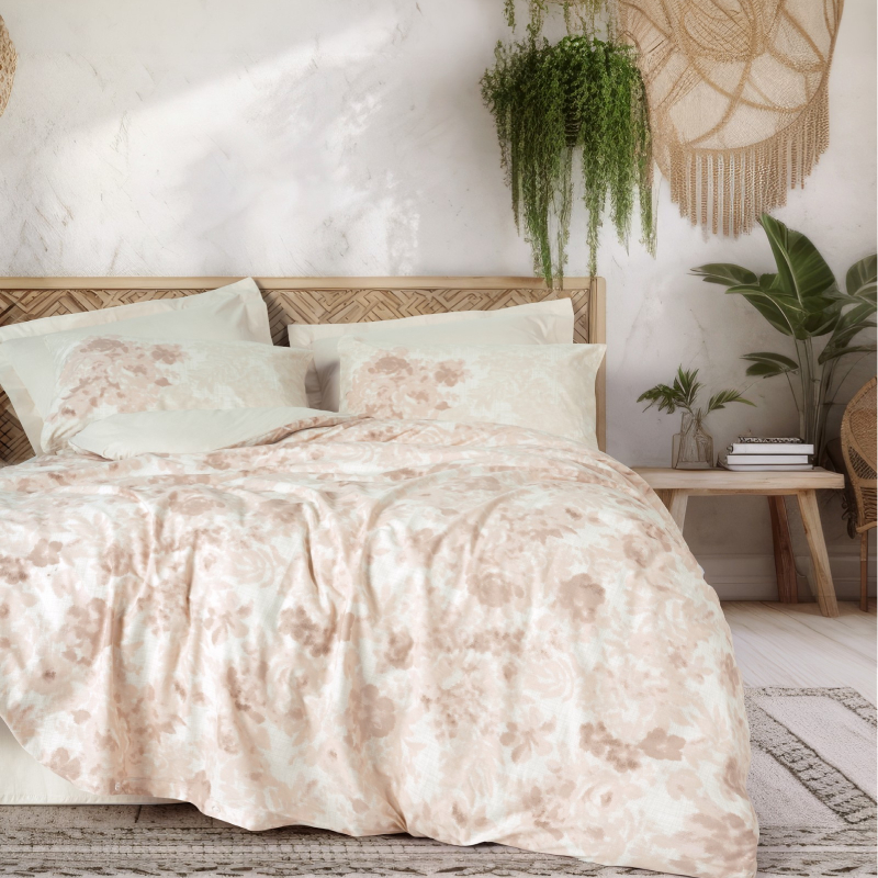 Комплектът Vestige се поддържа изключително лесно - просто го изперете на 30°C в обърнато положение, за да съхраните цветовете и формата. Не се препоръчва използването на избелващи препарати. Памукът е естествен материал, който не задържа алергени и е подходящ за чувствителна кожа. Дизайнът на комплекта Vestige съчетава изчистена естетика и практичност, което го прави подходящ за всякакъв тип интериор - от минималистични спални до класически обзаведени помещения. Цветовете и десените са внимателно подбрани, така че да създават усещане за спокойствие и уют, без да доминират визуално в стаята.